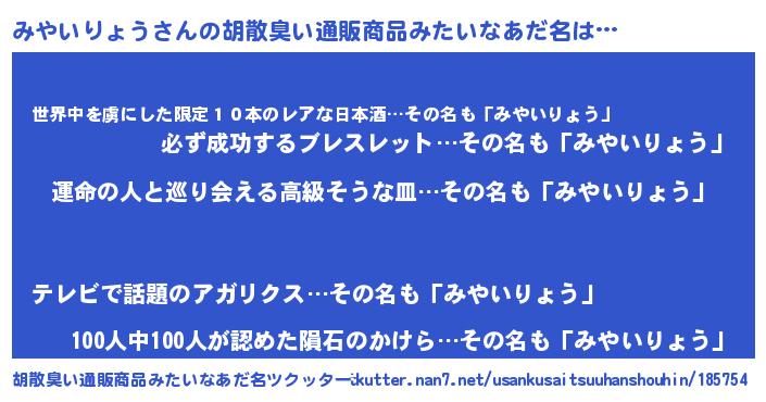 | ファンタジー風あだ名 | 『エターナルミヤイリョウー』 |