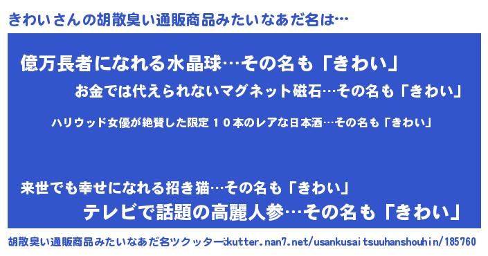 きわいさんの胡散臭い通販商品みたいなあだ名をツクッター!