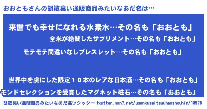 | ヘコむあだ名 | 『おおにー』『おおとも(遠い目)』 |