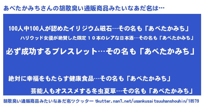 | ヘコむあだ名 | 『あべにー』『あべたかみち(苦笑)』 |