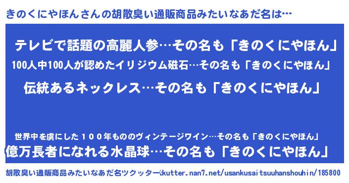 | ポケモン風あだ名 | 『ヒキノクニヤホン』『キノセウス』 |
