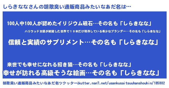 | 意味不明あだ名 | 『とにかく怪しいしらきなな』 |