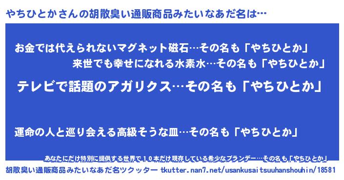 | ヘコむあだ名 | 『やちひとか(笑)』『なまこ酢』 |