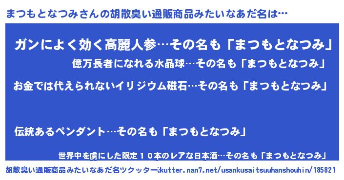 | 意味不明あだ名 | 『眠気覚ましガムまつもとなつみ味』 |