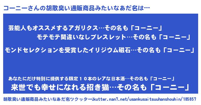 | ヘコむあだ名 | 『コーニー(笑)』『コーもー』『豆乳』 |