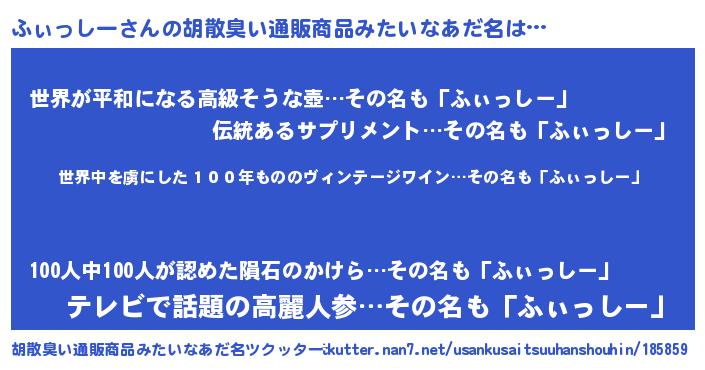 | ヘコむあだ名 | 『なまこ酢』『ふぃ太郎』『ふぃにー』 |