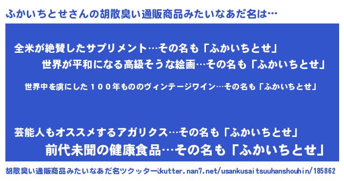 | 男性向けラノベタイトル風あだ名 | 『この素晴らしい世界にふかいちとせを!』 |