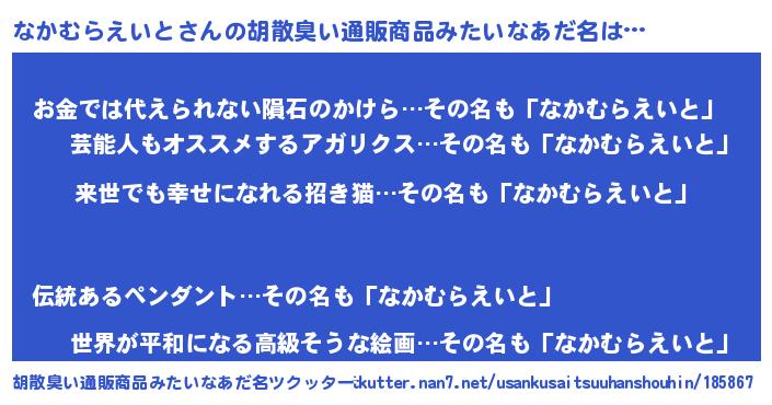 | 意味不明あだ名 | 『永久保存なかむらえいと』 |