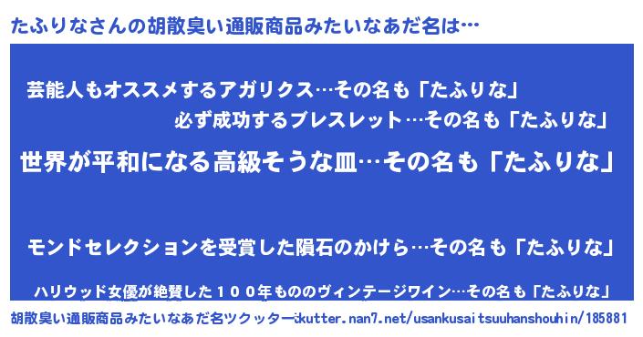 | 意味不明あだ名 | 『たふりなフォーエバー』『自称たふりな』 |