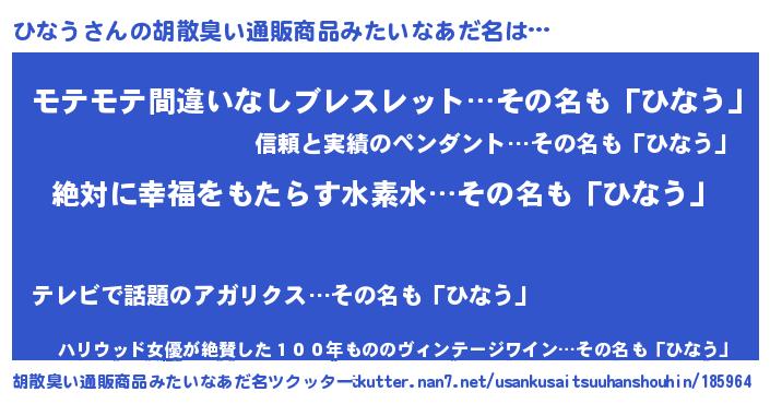 ひなうさんの胡散臭い通販商品みたいなあだ名をツクッター!
