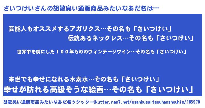 | 意味不明あだ名 | 『住所不定無職さいつけい(7歳)』 |