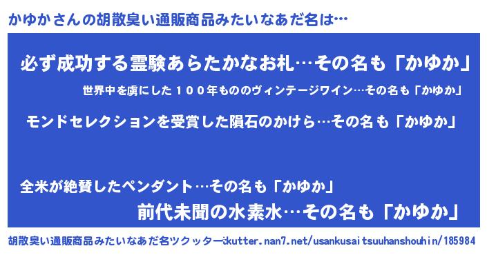 | ヘコむあだ名 | 『かゆっふぃ~』『かゆか(遠い目)』 |