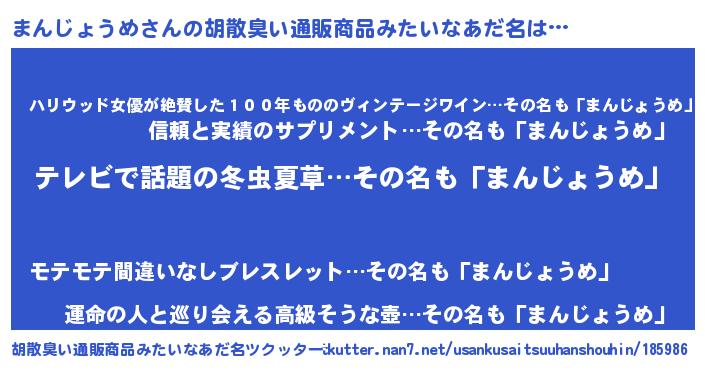 | 意味不明あだ名 | 『自称まんじょうめ』 |