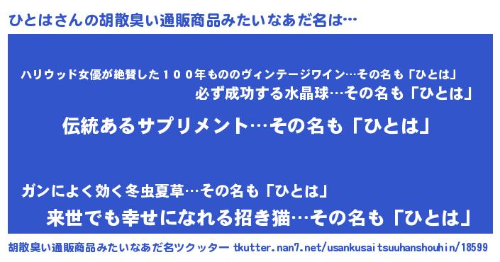 | ヘコむあだ名 | 『ひとを』『ひとは(笑)』『ひとにー』 |