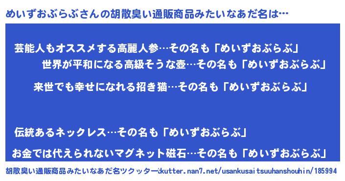 めいずおぶらぶさんの胡散臭い通販商品みたいなあだ名をツクッター!