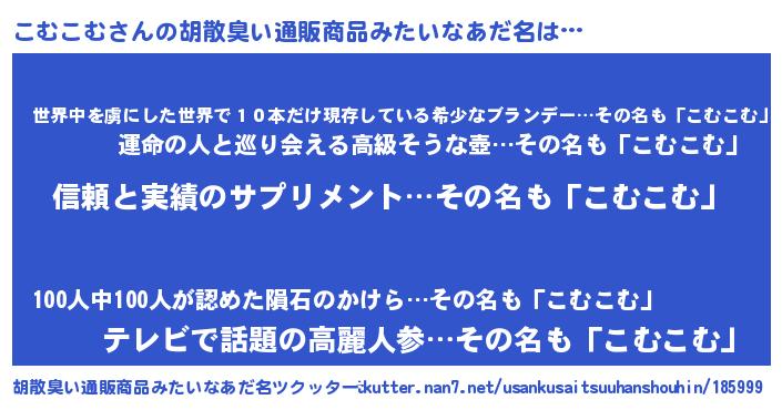 | 意味不明あだ名 | 『とにかく怪しいこむこむ』 |