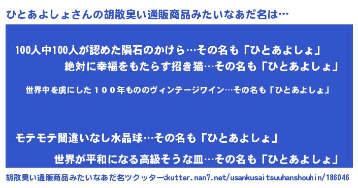 | 意味不明あだ名 | 『住所不定無職ひとあよしょ(3歳)』 |