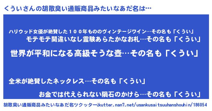 | ヘコむあだ名 | 『豆乳』『くうにゅー』『くう太郎』 |