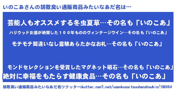 | ヘコむあだ名 | 『いのっふぃ~』『いのこあ(震え声)』 |