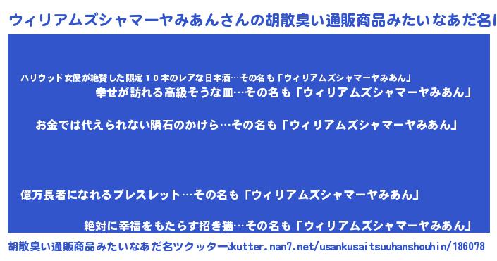 | ヘコむあだ名 | 『ウィリアムズシャマーヤみあん(震え声)』 |