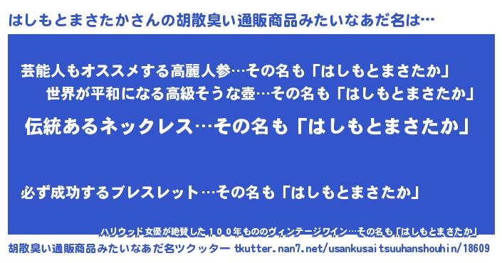 | 意味不明あだ名 | 『とにかく怪しいはしもとまさたか』 |