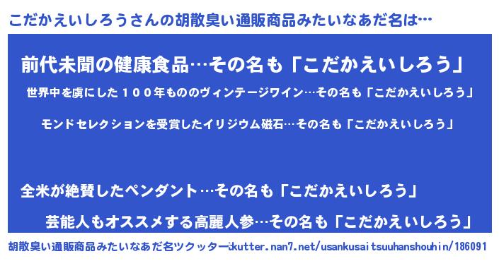 | 伝説のあだ名 | 『救世主となる占い師こだかえいしろう』 |
