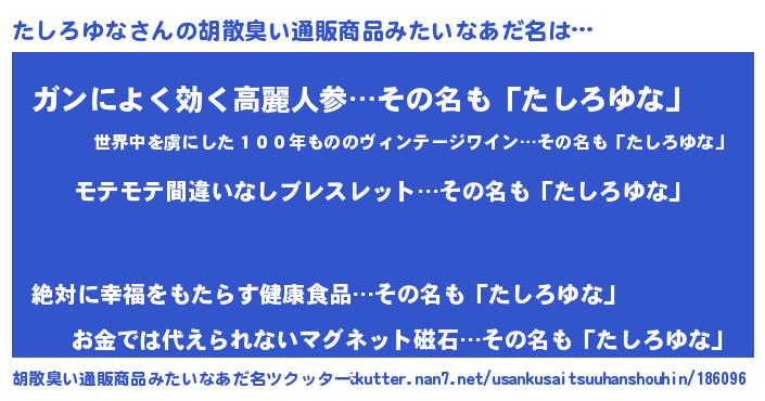 | ヘコむあだ名 | 『たしふぇ~』『たしろゆな(爆)』 |