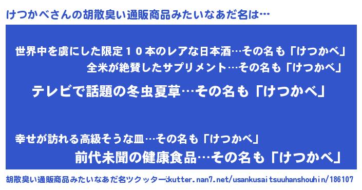 | 意味不明あだ名 | 『自称けつかべ』『永久保存けつかべ』 |