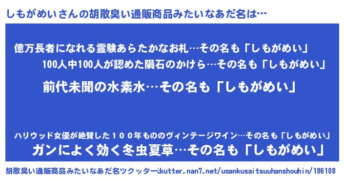 | 意味不明あだ名 | 『永久保存しもがめい』『自称しもがめい』 |