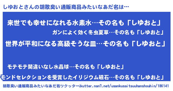| ヘコむあだ名 | 『なまこ酢』『しゆおと(爆)』 |