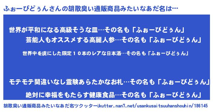 | 意味不明あだ名 | 『住所不定無職ふぉーびどぅん(47歳)』 |