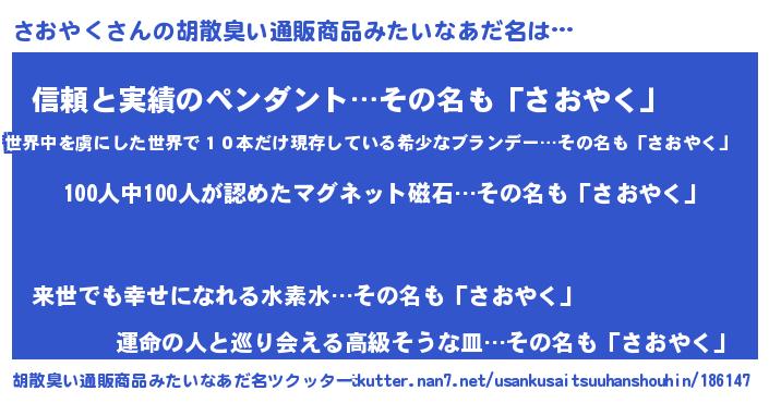 | ヒーロー風カッコイイあだ名 | 『友情の使者さおやく』『魔戒騎士サオ』 |