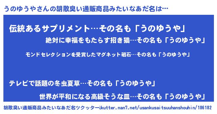| 肩書あだ名 | 『うのゆうや助教授』『うのゆうや少尉』 |
