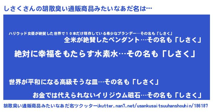 | 肩書あだ名 | 『しさくプロデューサー』『しさく少佐』 |