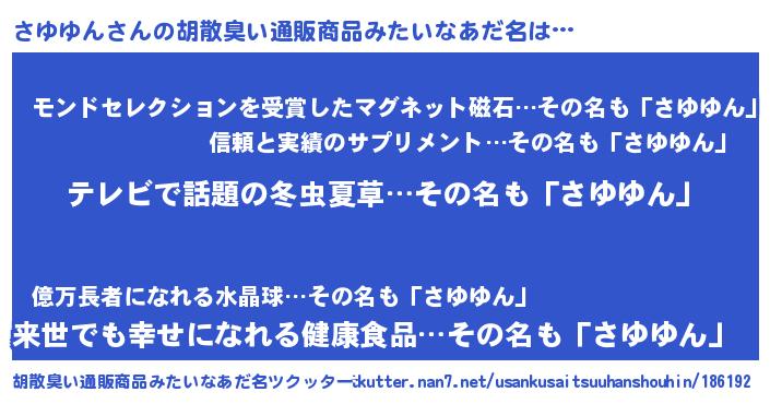 | 意味不明あだ名 | 『自称さゆゆん』『永久保存さゆゆん』 |