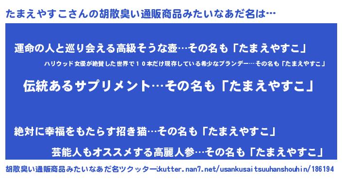 | 欧米人風あだ名 | 『たまえやすこ・ステッグマイヤー』 |