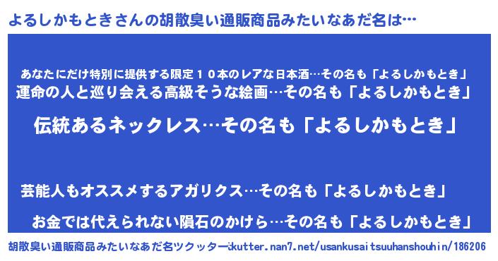 | 肩書あだ名 | 『よるしかもとき少将』 |