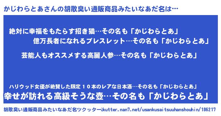 | 意味不明あだ名 | 『自称かじわらとあ』 |