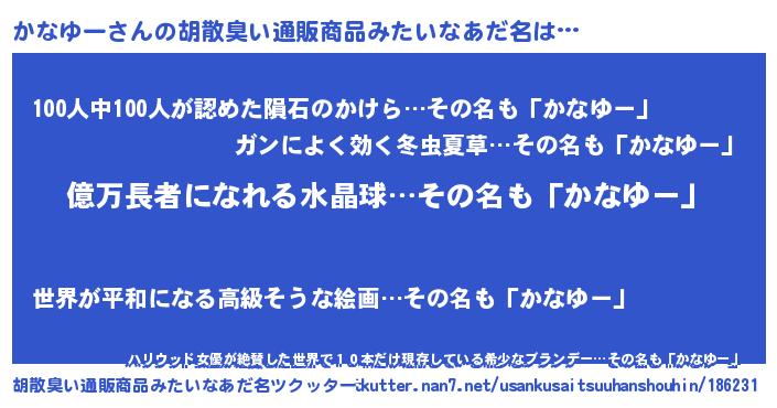| 意味不明あだ名 | 『ペロリンかなゆー』『自称かなゆー』 |