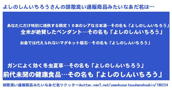 | ヘコむあだ名 | 『よしのしんいちろう(笑)』『よしっ子』 |