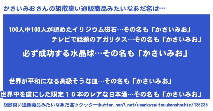 恥ずかしいあだ名 | 『プリティーかさいみお』『かさっちょ』 |