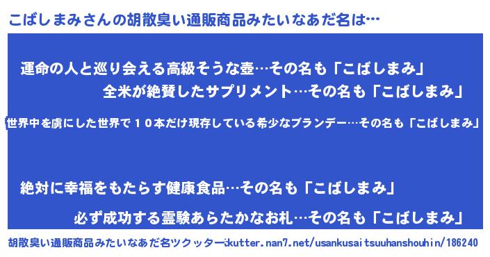 | 男性向けラノベタイトル風あだ名 | 『この素晴らしい世界にこばしまみを!』 |