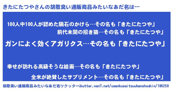 | ヘコむあだ名 | 『きたっぺ』『きたにたつや(苦笑)』 |