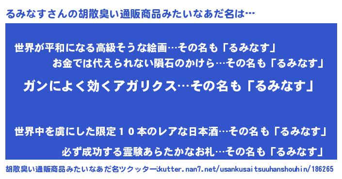 | 伝説のあだ名 | 『秘められし忍者るみなす』 |