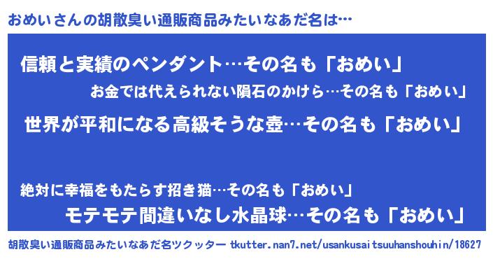 | ヘコむあだ名 | 『なまこ酢』『おめっちょ』 |