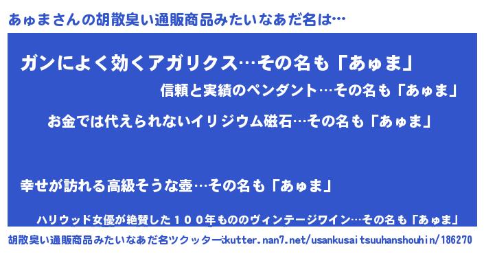あゅまさんの胡散臭い通販商品みたいなあだ名をツクッター!