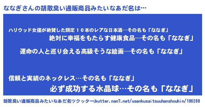 | ヘコむあだ名 | 『酢こんぶ』『ななもー』『ななを』 |