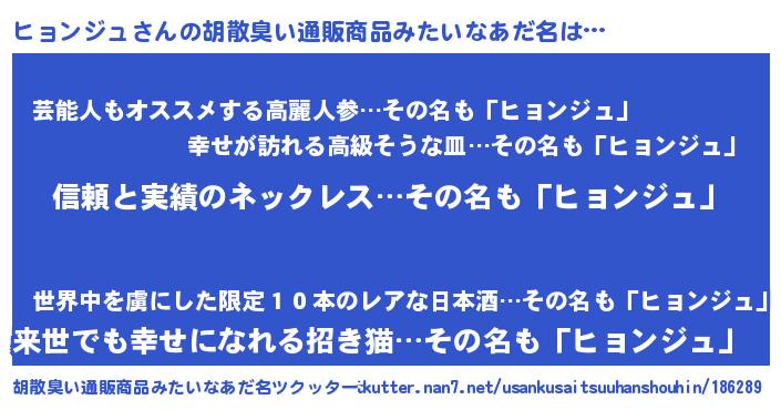 | ヘコむあだ名 | 『ヒョっ子』『ヒョンジュ(笑)』 |