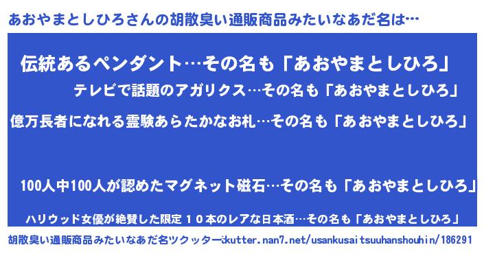 | 伝説のあだ名 | 『封印されしスナイパーあおやまとしひろ』 |