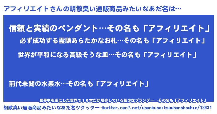 | 欧米人風あだ名 | 『アフィリエイトクリステル』 |